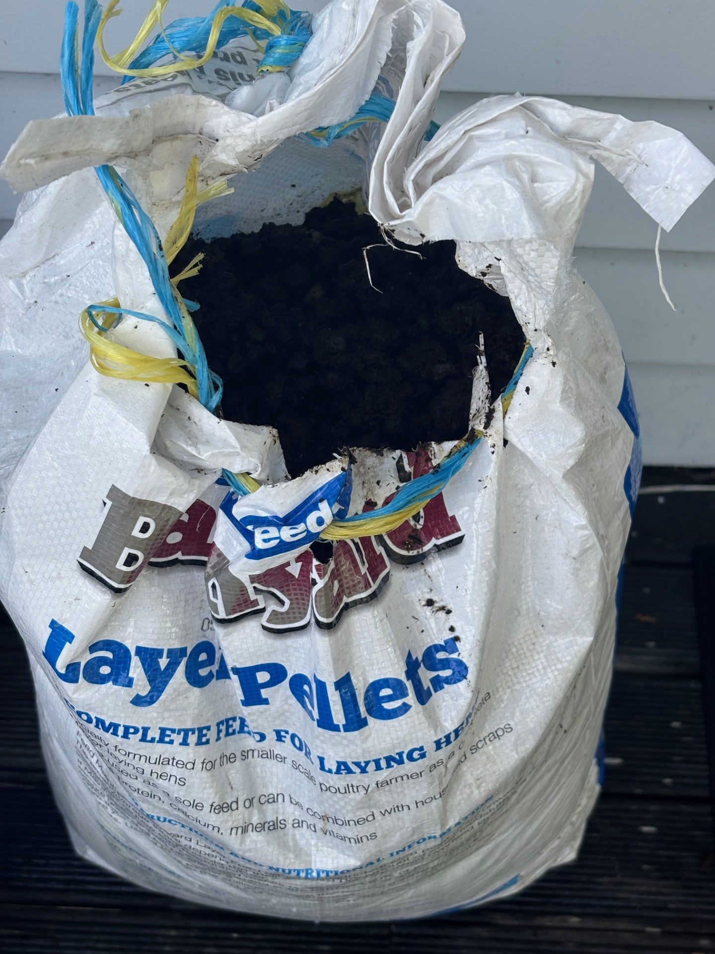 Sheep poo collected by the kids from the banks Peninsula farm. Yes we pay them to collect it. Its a win win situation.